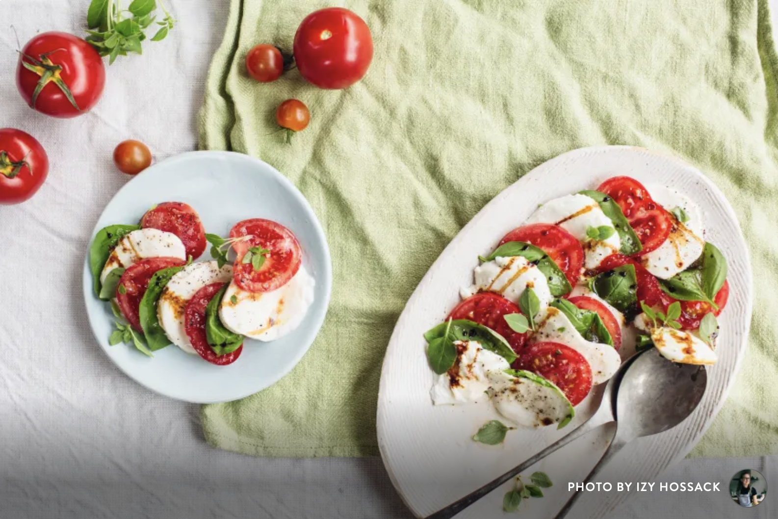 Mozzarella, Tomato and Basil Salad: Appetizer found in the “Ultimate Italian Cookbook”. Authentic and light.