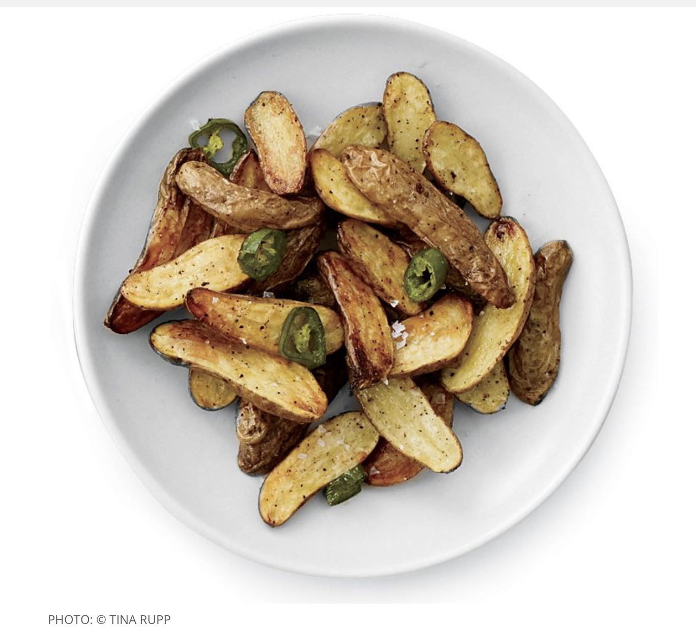 Jalapeño-Roasted Potatoes: These quick-roasted potatoes couldn’t be simpler to make, and they get a hit of spice from fresh sliced jalapeños.