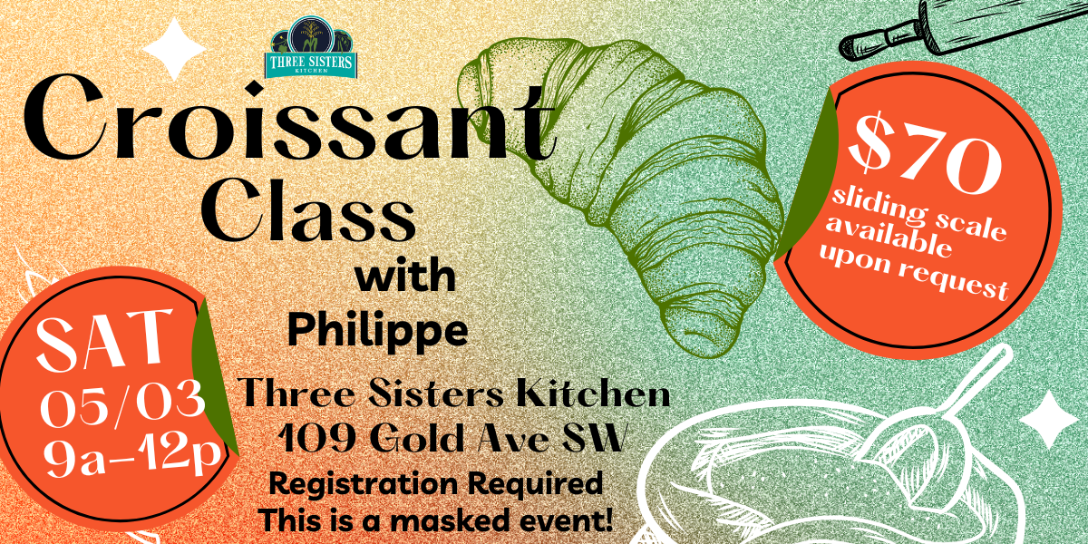 Join us for a fun-filled croissant baking class at Three Sisters Kitchen and learn the secrets to making flaky, buttery croissants from scratch! Sliding scale is available. Please reach out to [email protected] for inquiries.