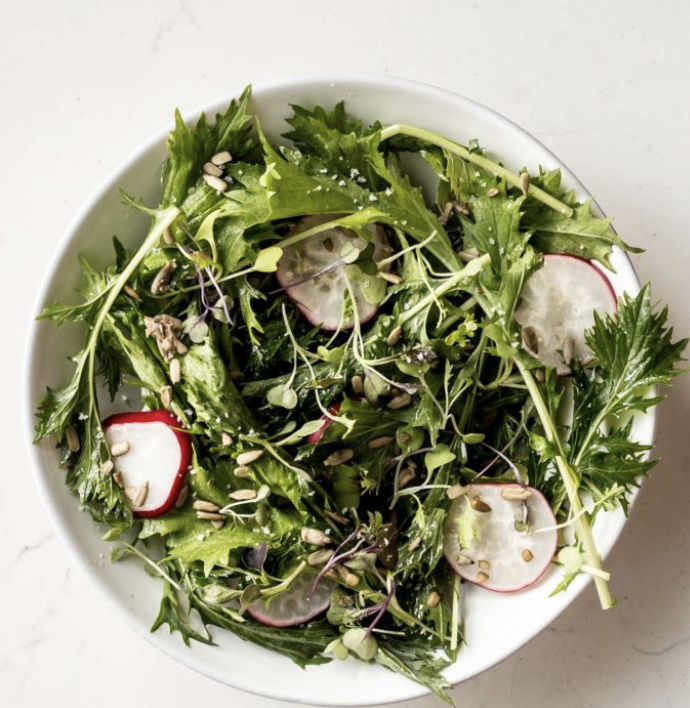 Mizuna are Japanese Mustard Greens and they are a good source of vitamins A, C, K, and folate and are high in fiber. They also have minerals like calcium, magnesium and iron, which are important for bone health and muscle function. The antioxidant properties help protect against cell damage, which can potentially reduce the risk of chronic diseases. Mizuna is also good for digestion and is anti-inflammatory.