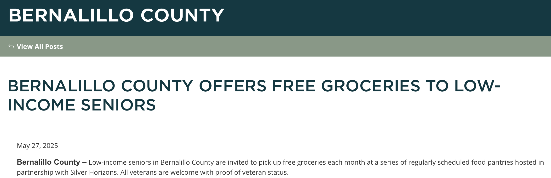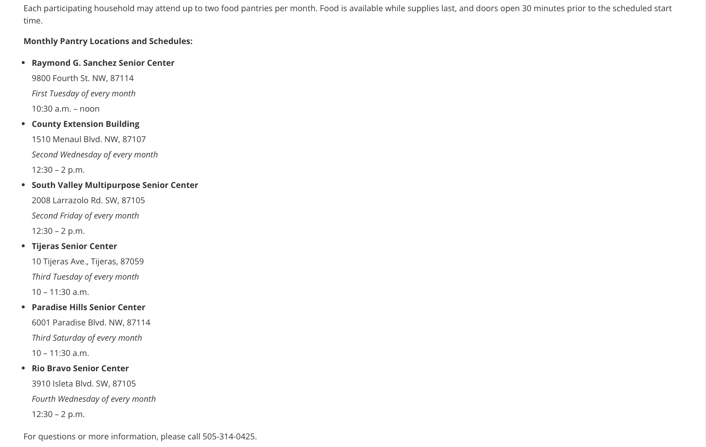 – Information for Bernalillo County food programs and Goodwill classes in the “Community Resource” section.