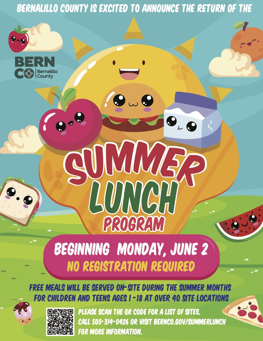 The Bernalillo summer lunch program for kids is back! Click here for locations.