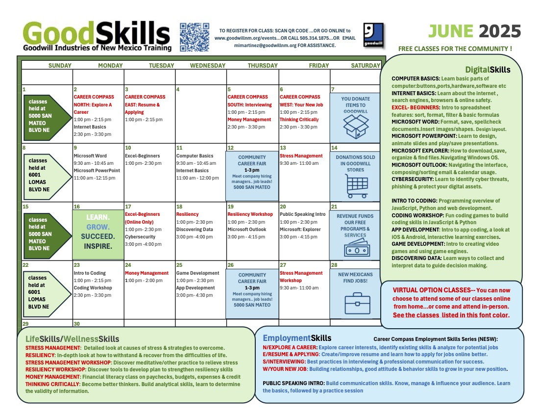 Goodwill has some classes to improve computer and life skills! Here is the calendar.
