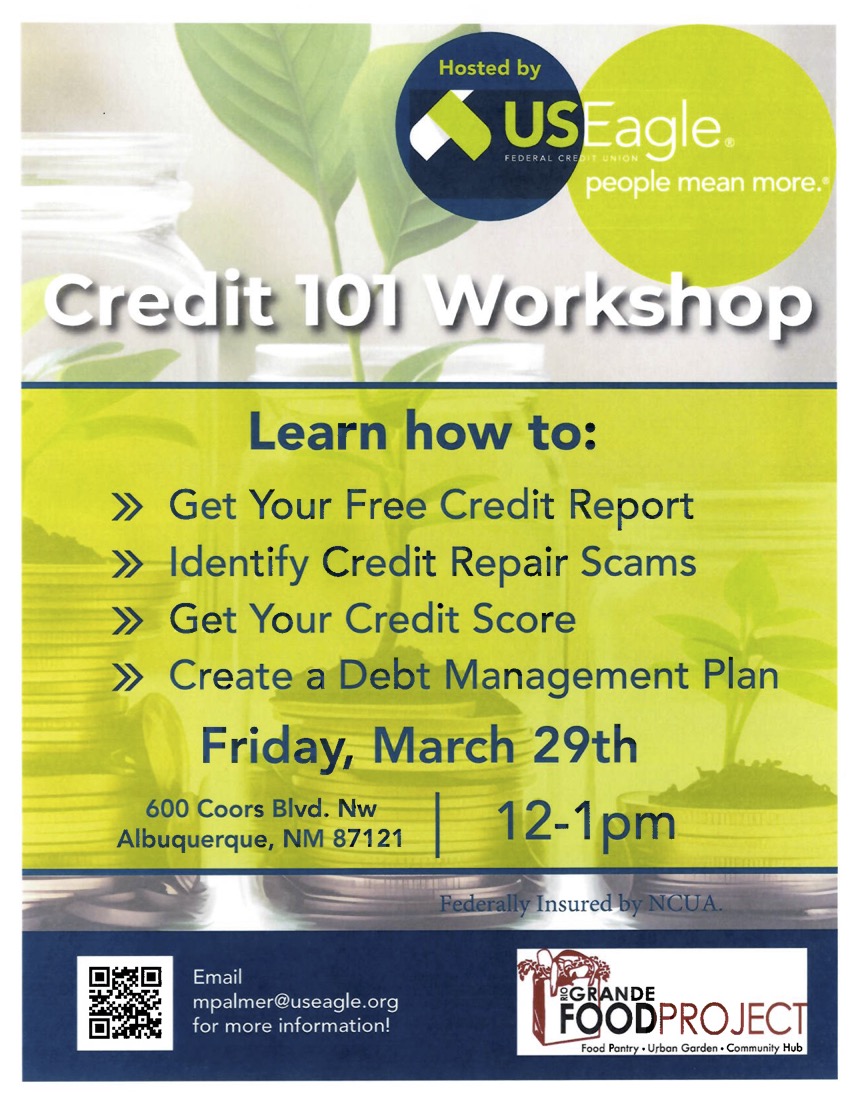 US Eagle Federal Credit Union will be holding a free Credit 101 Workshop to help you learn how to track and manage your credit and to protect yourself from credit scams.