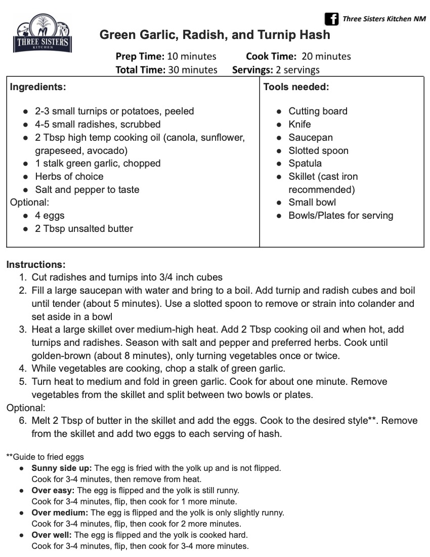 Try out this recipe for Green Garlic, Radish, and Turnip Hash featured in this month’s ReFresh Cooking Class!