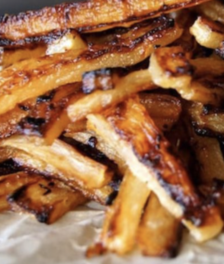 Roasting creates a wonderful caramelized “crust” for this fries recipe. When you eat them, think of them more as spicy roasted carrots, instead of potatoes. Daikon Radishes are high in vitamin C, folate (Vitamin B9), calcium, magnesium and potassium.