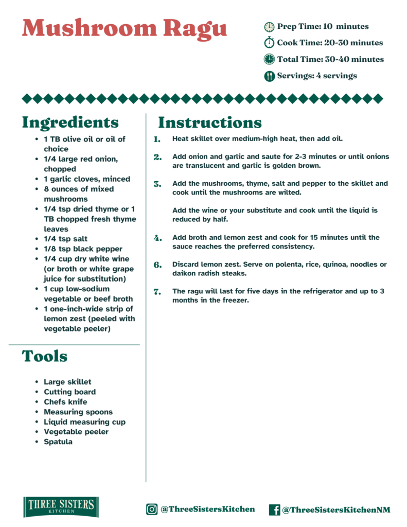 A yummy recipe for Mushroom Ragu