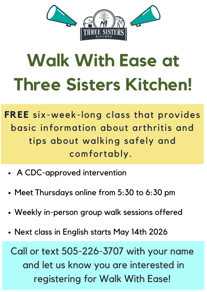 Three Sisters Kitchen will be hosting a 6-week Walking Program, the first one will be in Spanish from March 26th – April 2nd and the second will be in English from May 14th to June 18th. The classes will be online on Thursdays from 5:30-6:30 and the group will decide when to walk in person.