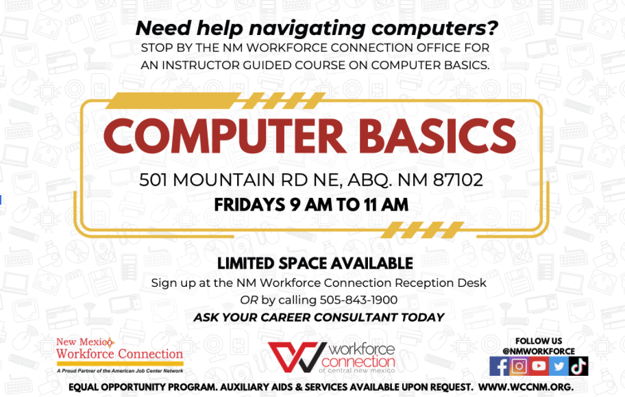 Join and learn about computer basics and navigating. This will help to enhance skills in keyboarding skills,internet, email, social media, and job readiness.