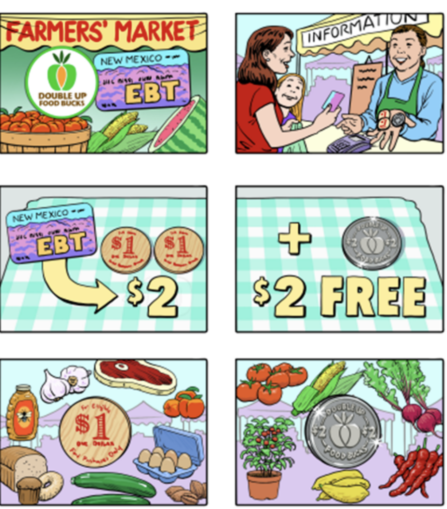 When you use your SNAP-EBT Card, Double Up matches your New Mexico-grown fruit and vegetable purchases dollar for dollar. That means you and your family get twice the fresh fruits and veggies.